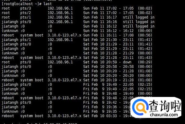last命令可以用来查看所有系统的登录记录,格式为last [参数]。但是切记,这些信息都是以日志文件的形式存在的,因此黑客可以轻易地对它们进行篡改。所以仅仅从这一条命令无法得出系统是否被恶意入侵。