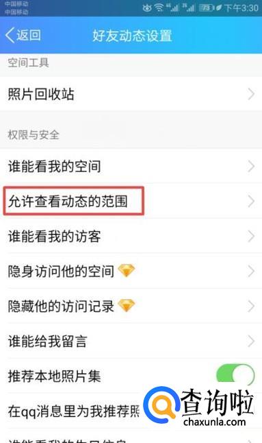 弹出的界面,我们点击允许查看动态的范围;