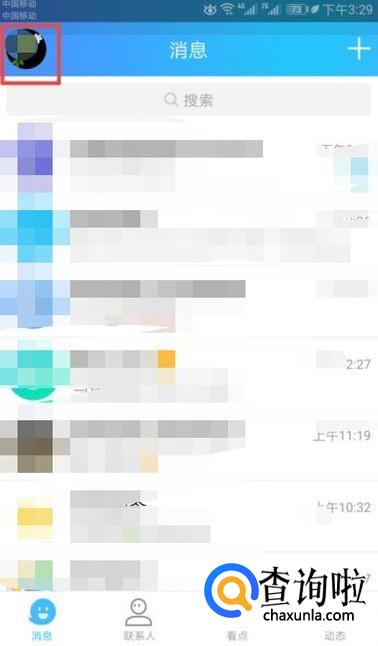 首先,我们打开我们的手机QQ,然后我们点击左上角的头像;