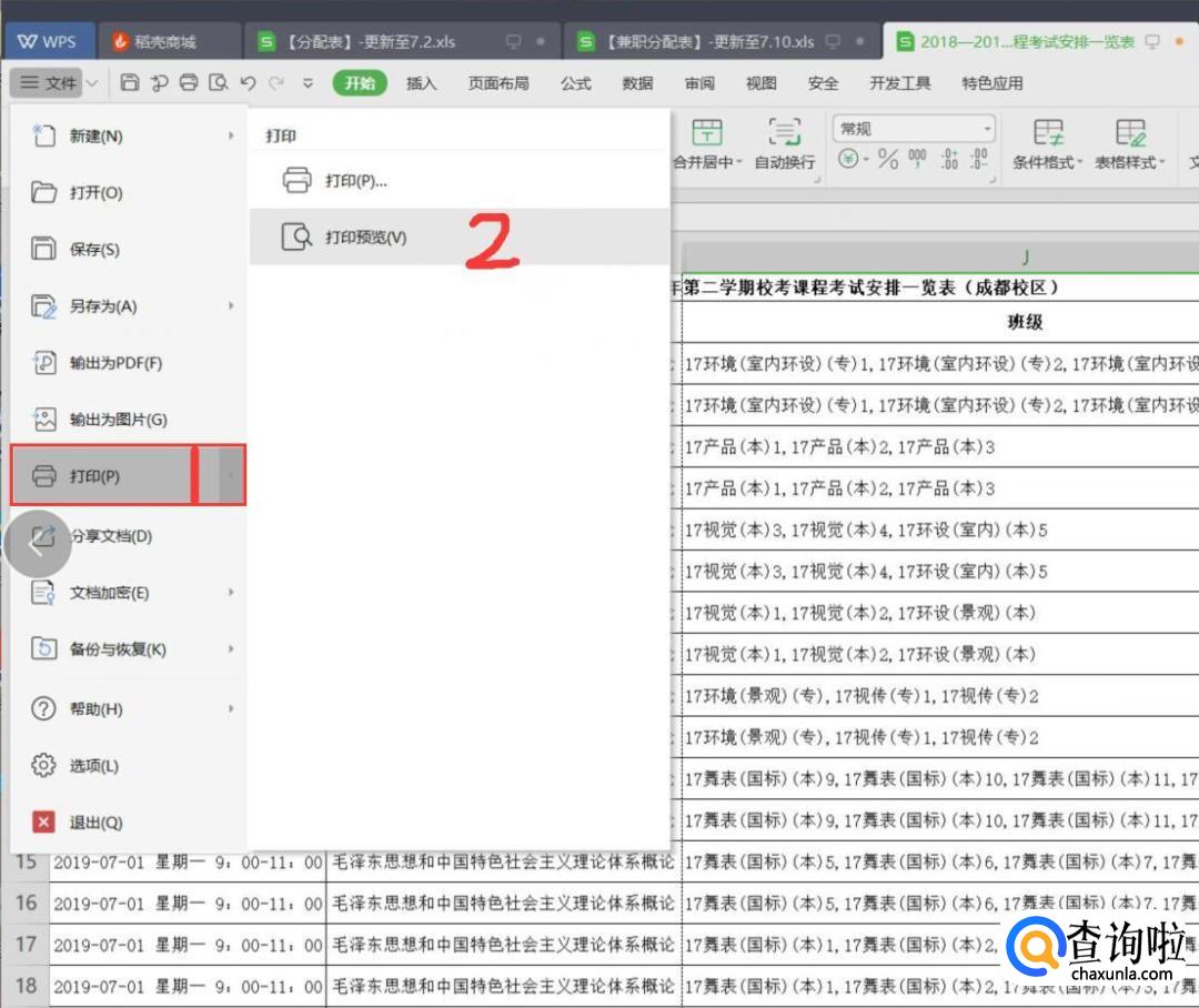 在下拉菜单里依次选择‘打印’——‘打印预览’。