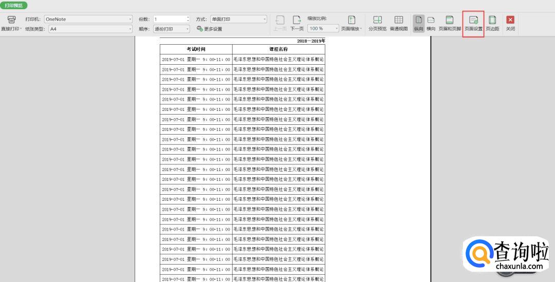 在打印预览窗口我们点击‘页面设置’。