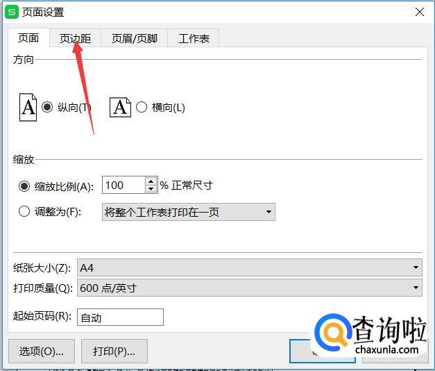在弹出的对话框里选择‘页边距’选项卡。