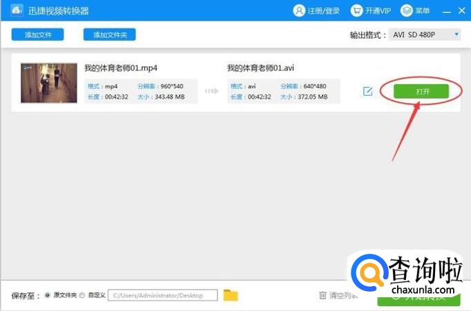 文件转换完成后,我们可以通过文件后面的“打开”按钮进入并查看转换后的AVI文件!