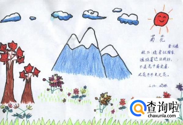 秋天到了,菊花金黄色的花瓣慢慢绽放。深秋的早晨,大地、屋顶、树枝都洒满了寒霜,瑟瑟秋风吹来,黄叶纷飞,百话凋谢。可是菊花却挺立着干,伸长着枝,张开着叶,盛开着花,显示了它傲霜耐寒的性格。