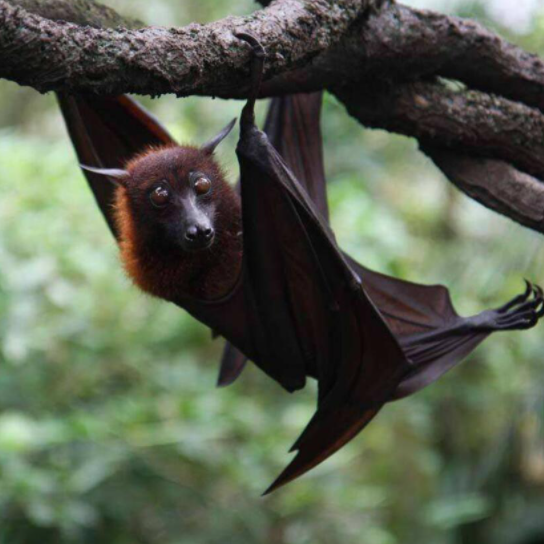 蝙蝠类动物全世界共有1300多种,我国约有81种。蝙蝠(学名:Chiroptera)是脊索动物门、哺乳纲下的一类动物,是唯一能够真正飞翔的哺乳动物;除一般哺乳动物的特点外,还有一系列适应飞行的形态特征。最小的是混合蝠,体重仅有1.9克,翼展16厘米;一些狐蝠的体重可以超过1.3千克,翼展可达1.7米。蝙蝠全身骨质轻,头骨愈合程度较高,肩带发达,胸骨具龙骨状突起。后肢胫骨、腓骨退化。耳壳发达,常具发达的耳屏或对耳屏。翼膜、耳、唇等处有丰富的感觉毛。颜色多样,大多是褐色、灰色和黑色。