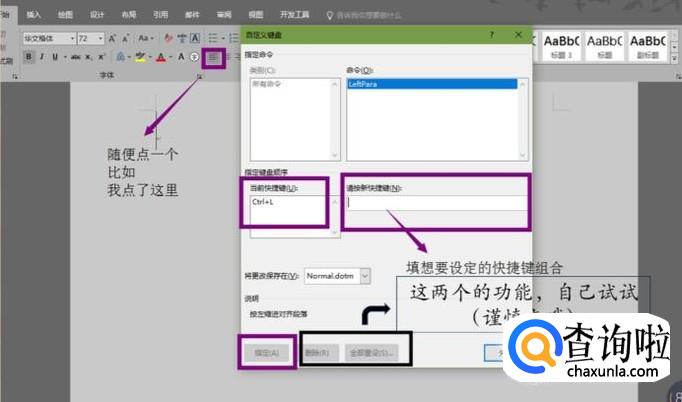 根据自己的爱好为Word功能设定快捷键,具体如下图: