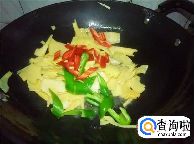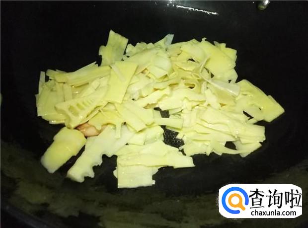 竹笋大概炒3分钟左右,就加入适量的水,盖上锅盖焖,把竹笋给焖熟,竹笋一定要煮熟透才可以吃的哦。