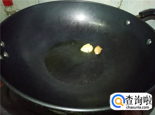 热锅下油,放入蒜头煸香;