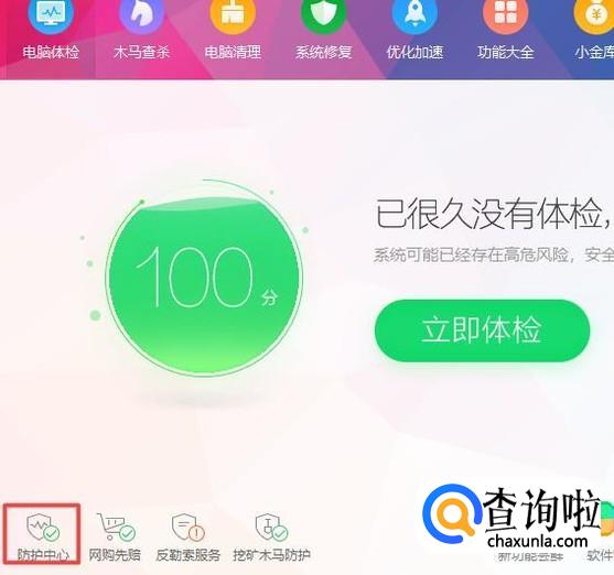 首先,我们打开我们的电脑,然后我们打开我们电脑上面的360安全卫士,之后我们点击防护中心;
