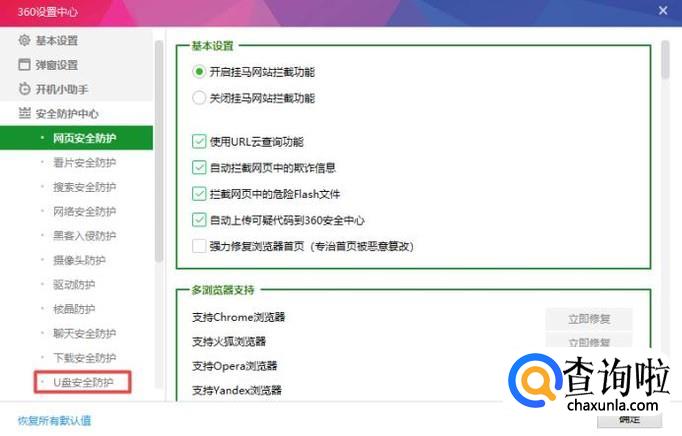 然后我们点击弹出界面中的U盘安全防护;