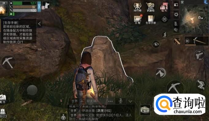 采集石头之前要先寻找石头,不同的物品有它们的专属标志,有石头的地方就会有属于石头的标志,那么根据右上角的小地图就可以寻找石头啦。