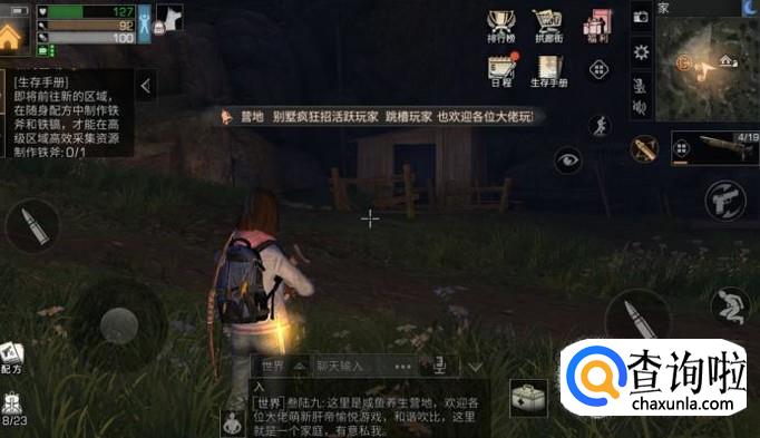 找到石头之后,点击右边的操作按钮,挥动石镐来敲击石头,完成采集动作,在操作按钮的左上方有一个“一件采集”按钮,长按这个按钮,然后等到瞄准在石头上的圈圈变成一个点,再松开,石头就一键采集成功啦,不过这个不能连续使用,有冷却时间的哟。