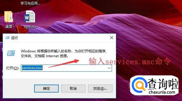 接下来在左下角的输入框中输入services.msc命令,如下图所示