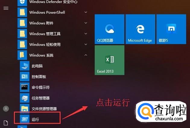 首选点击Windows系统下面的运行选项,如下图所示