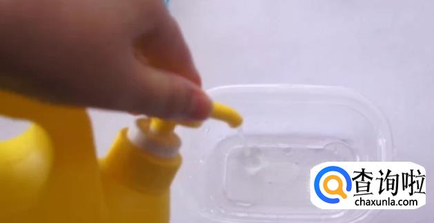 首先取一个干净的带盖的容器(建议用一次性的盒子);将洗洁精挤一些到容器中。
