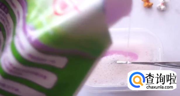 最后加入洗衣液,用勺子混合均匀直至起泡胶成型。