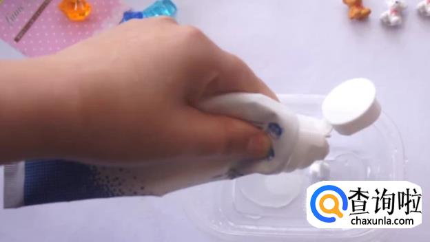 再把牙膏挤入一些,并加一点点清水。