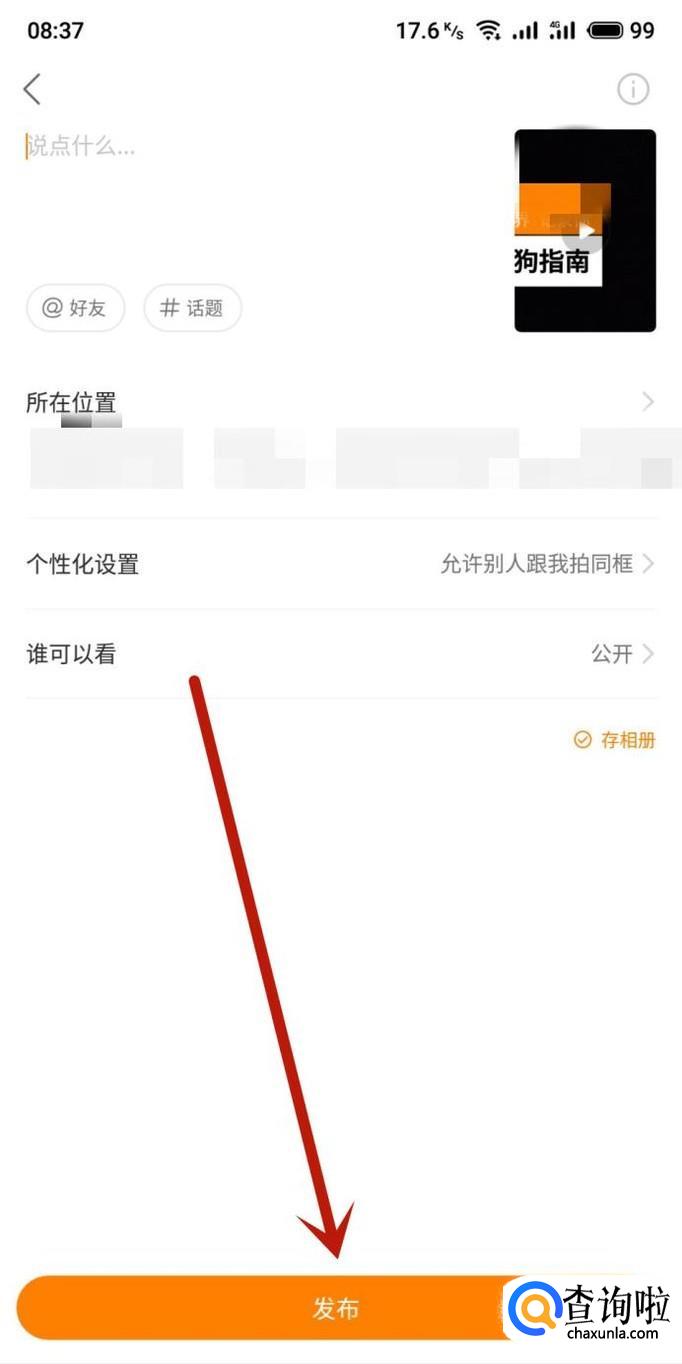 进入该页面,编辑好发布内容,点击“发布”即可,如图所示。