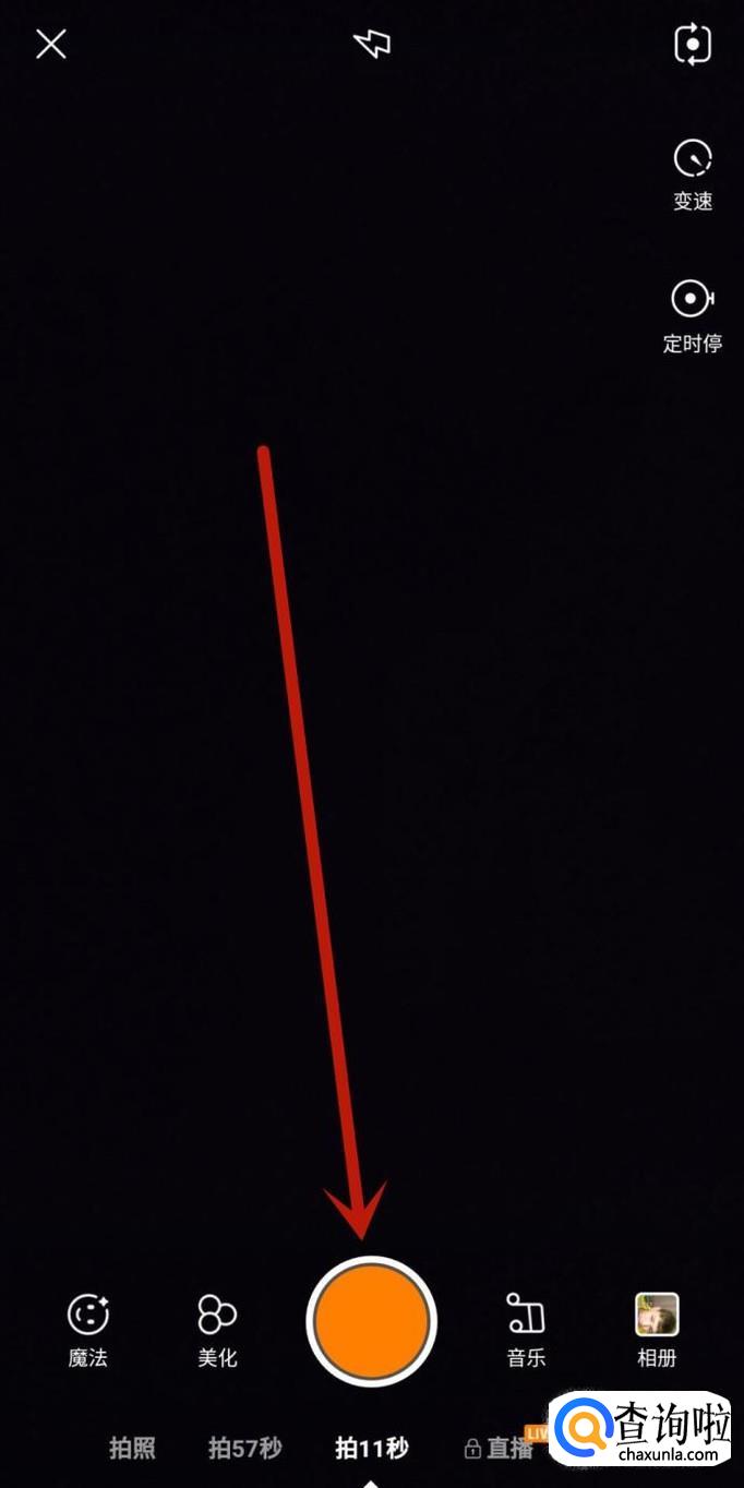 在快手拍摄页面点击“拍摄”按键,如图所示。