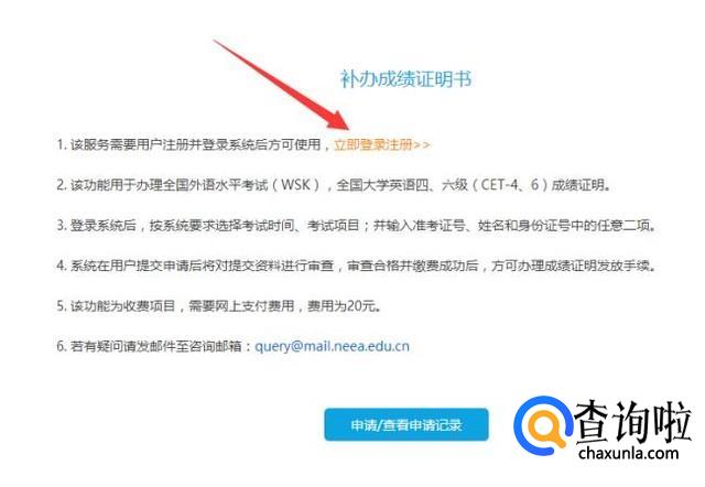 在有了帐号后便可进行登录。在登陆后找到页面下方的“申请新的成绩证明”,并点击进入。在该页面也可查看自己以往申请补办的情况。