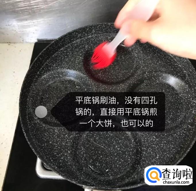 然后在四孔锅中刷上一层油,如下图所示。小贴士如果大家家中没有四孔锅,直接使用平底锅也是可以的。
