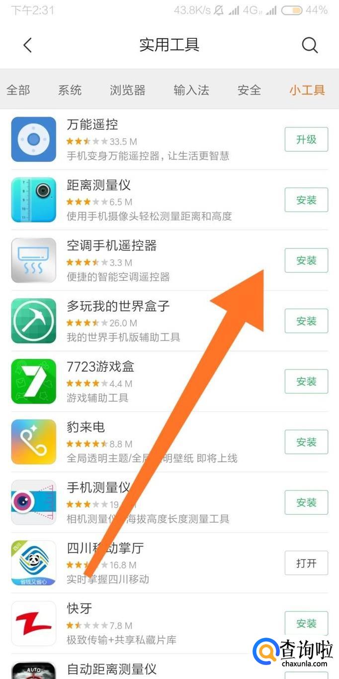 搜索结果出来后,点击软件名称右边的“安装”字样即可下载安装该款软件。