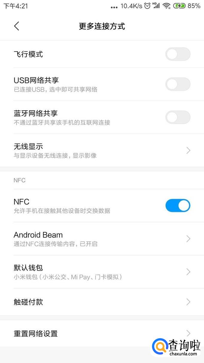 进入设置界面,找到更多连接方式,如下图
