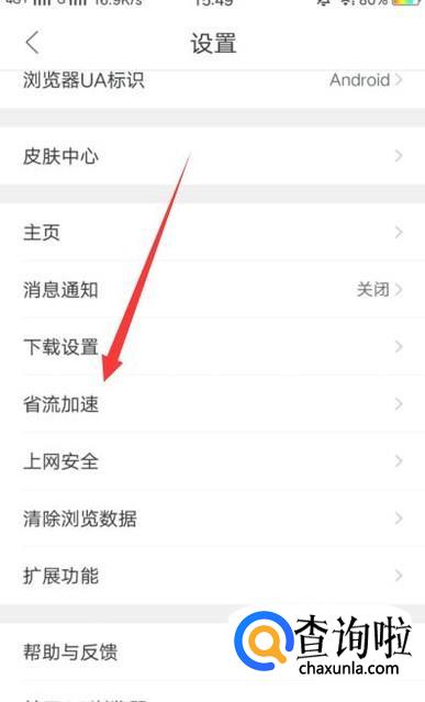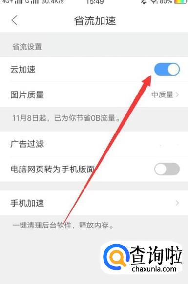 打开之后,选择省流加速,进入下一页面,如图所示。