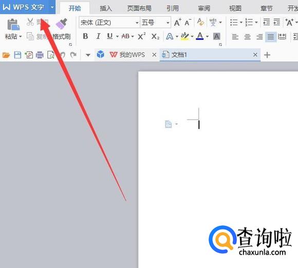 进入之后,点击左上角的“WPS文字”右侧的小三角按键,如图所示。