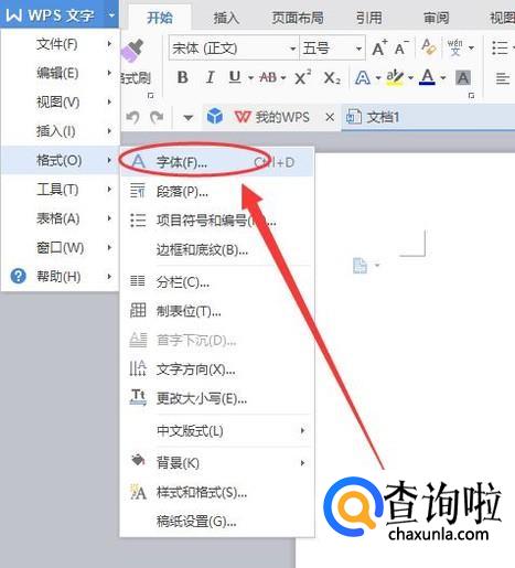打开之后,选择“格式”,然后选择“字体”,如图所示。