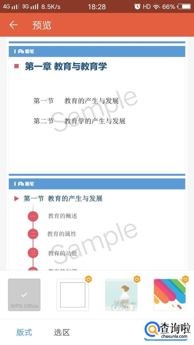 点击后,出现“版式”和“选区”,版式选择自己可以用的,非会员默认为第一个,会员可以有多重选择。“选区”是来选择哪些输出为图片。