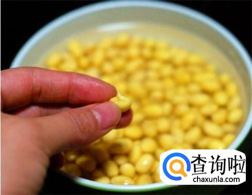 黄豆挑拣好,把那些生虫的瘪的全部挑出去不要,用水冲洗干净之后加温水浸泡一晚。