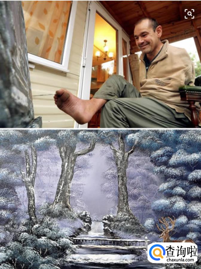 纪雷朝那人看了一眼,发现他是个缺了两只手臂的残废人,就婉转的拒绝他,并说:“我想你画画恐怕不太方便吧?”