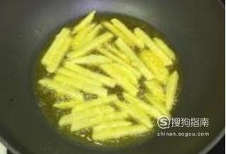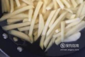 然后将土豆条捞出沥干水分,起锅烧油,油热后放入土豆条进行炸制,开小火慢慢炸,大火容易糊。