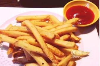 约炸制三分钟后,土豆条就变的金黄酥脆了,这时候就可以捞出控油了,这样一盘薯条就炸好了,配上番茄酱会更好吃噢!