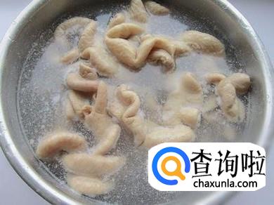 再用清水冲洗几次,把肥肠翻回原来,然后加适量的食盐和白醋再次抓捏几分钟,用清水冲洗捞上来沥干水分。