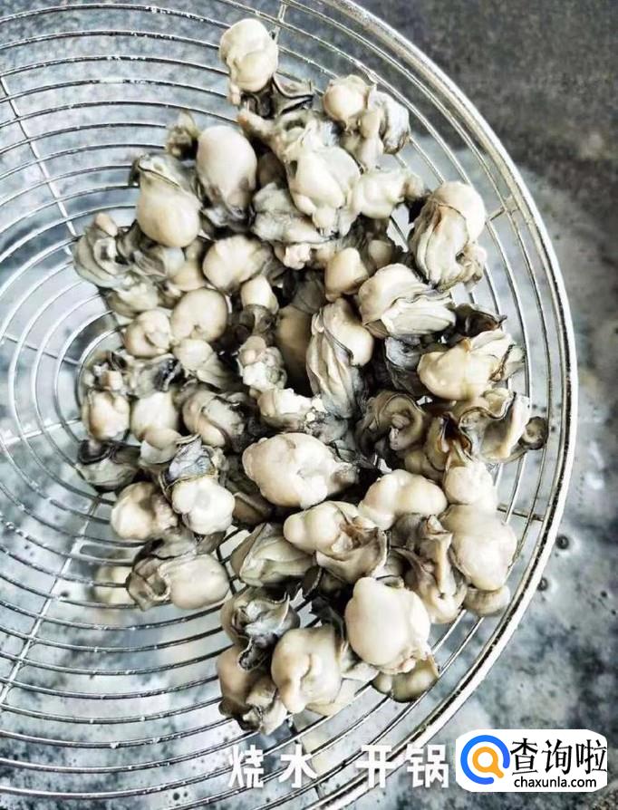 然后锅中放入适量的清水,待水烧开,倒入牡蛎煮三分钟,如下图所示。