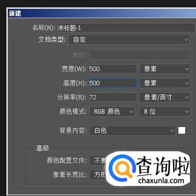 首先,启动PS软件,进入到操作界面。CTRL+N,新建一个500X500像素的画布。