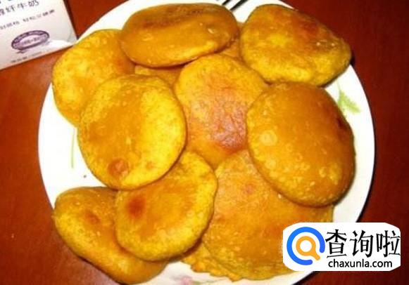 糯米南瓜饼:先把南瓜蒸熟,然后加入适量白糖与糯米粉一起和成面团,再用手拍成一个个小饼,放入平底锅煎至双面呈焦黄色就可以享用了。