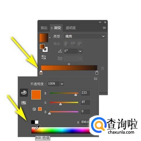 接着设置渐变颜色,鼠标双击渐变滑块即可调出颜色面板,从中选择颜色。