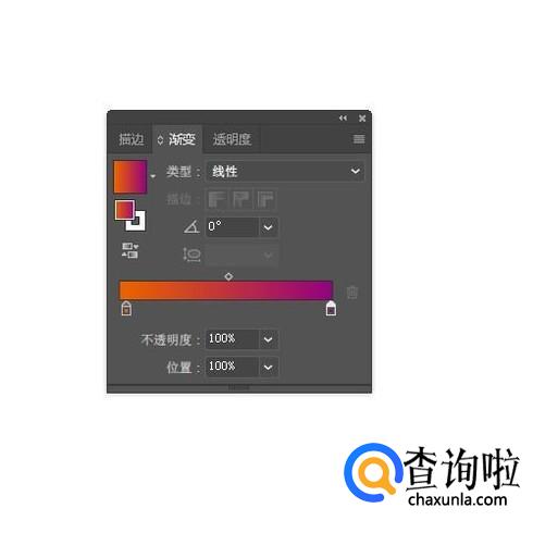 渐变效果设置完成。把面板关闭。此时,工具栏下方的填充色块已自动显示刚才设置的渐变色。