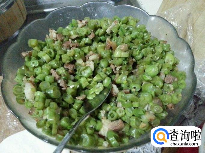 切好的四季豆、剁好的猪肉搅拌在一起,加入耗油、葱姜蒜沫、料酒、盐、少量的凉白开腌制一段时间就可以使用了。