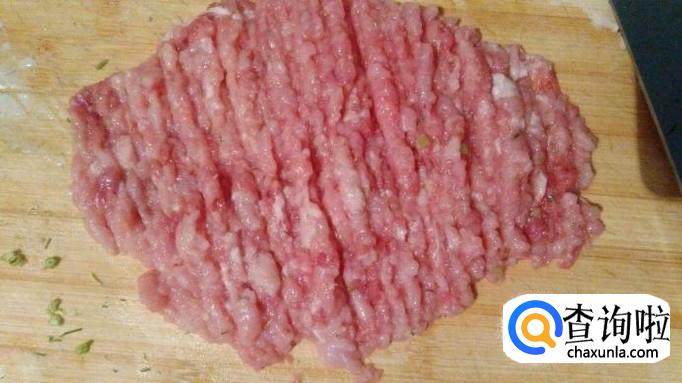 然后把猪肉用清水清洗干净,然后把猪肉用刀剁碎,越碎越好,这样子的话会更加入味。