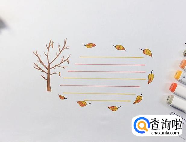 最后给边框涂完颜色,画上线格,落叶主题边框就画好啦~