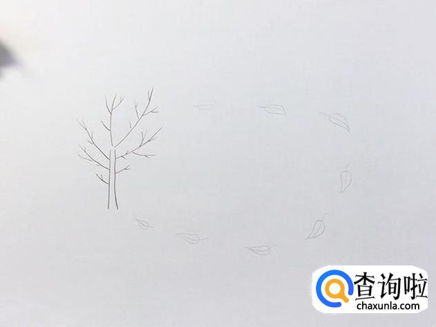 首先在画纸左边画一个树叶掉光了的树干。