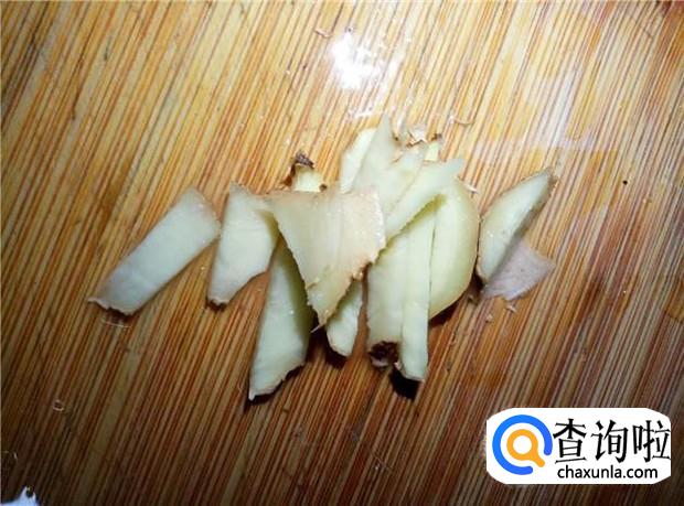 准备好所有材料:鸡肉半边、蘑菇适量、姜适量。