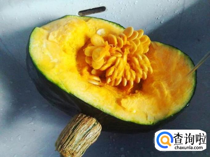 南瓜和胡萝卜用不上那么多,胡萝卜小半根,南瓜切一小块就够了,不过在切之前一定要清洗干净,南瓜切开,将里面的瓜瓤取出来,这些南瓜种子不要扔了,放进水里清洗干净晒干炒熟,就是喷香喷香的南瓜瓜子哦。