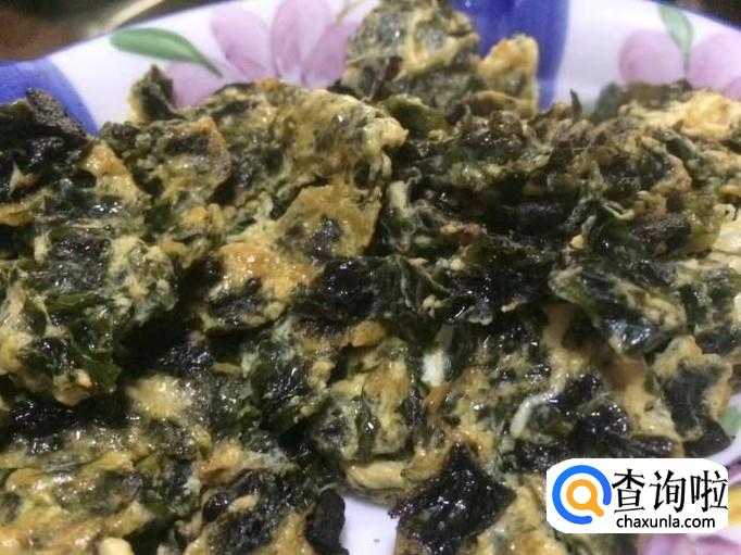 紫菜煎蛋,紫菜洗干净剪成片,倒入适量的洗干净,鸡蛋打入碗中,倒入紫菜,加入适量的生抽,锅中倒入适量油,油热倒入紫菜鸡蛋液,蛋液凝固即可出锅
