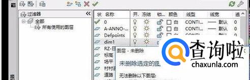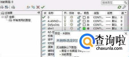 值得注意的是,如果你选中的是0图层或Defpoints图层以及当前图层是无法删除的,当前图层就是指你视图窗口当前展示的图层。