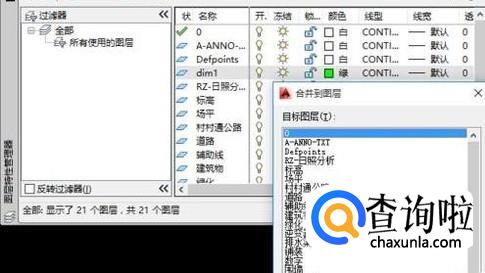 然后会出现所有的图层列表,选择你要合并到的图层,小编这里选择的是0图层,如下图所示。
